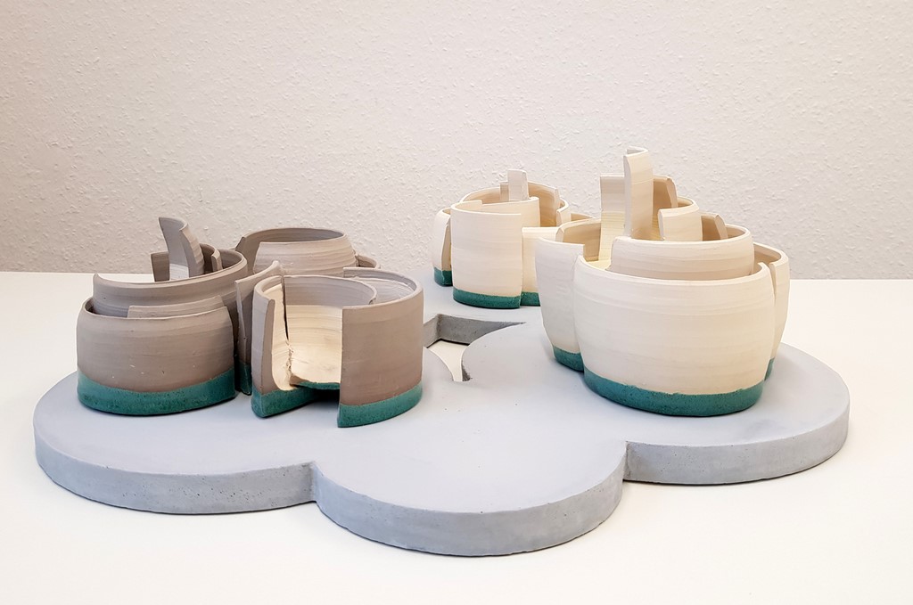 ca. 55 x 50 cm, Höhe 17,5 cm, Keramik und Gips